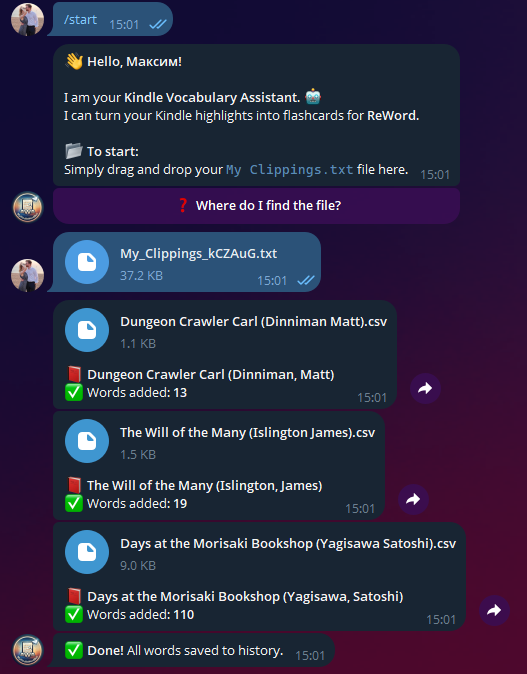 Как я перестал лениться и написал бота, который переносит слова из Kindle в ReWord за меня (теперь с ИИ) +2 26.12.2025 09:46 maxim_bolobaiko 6 5100
