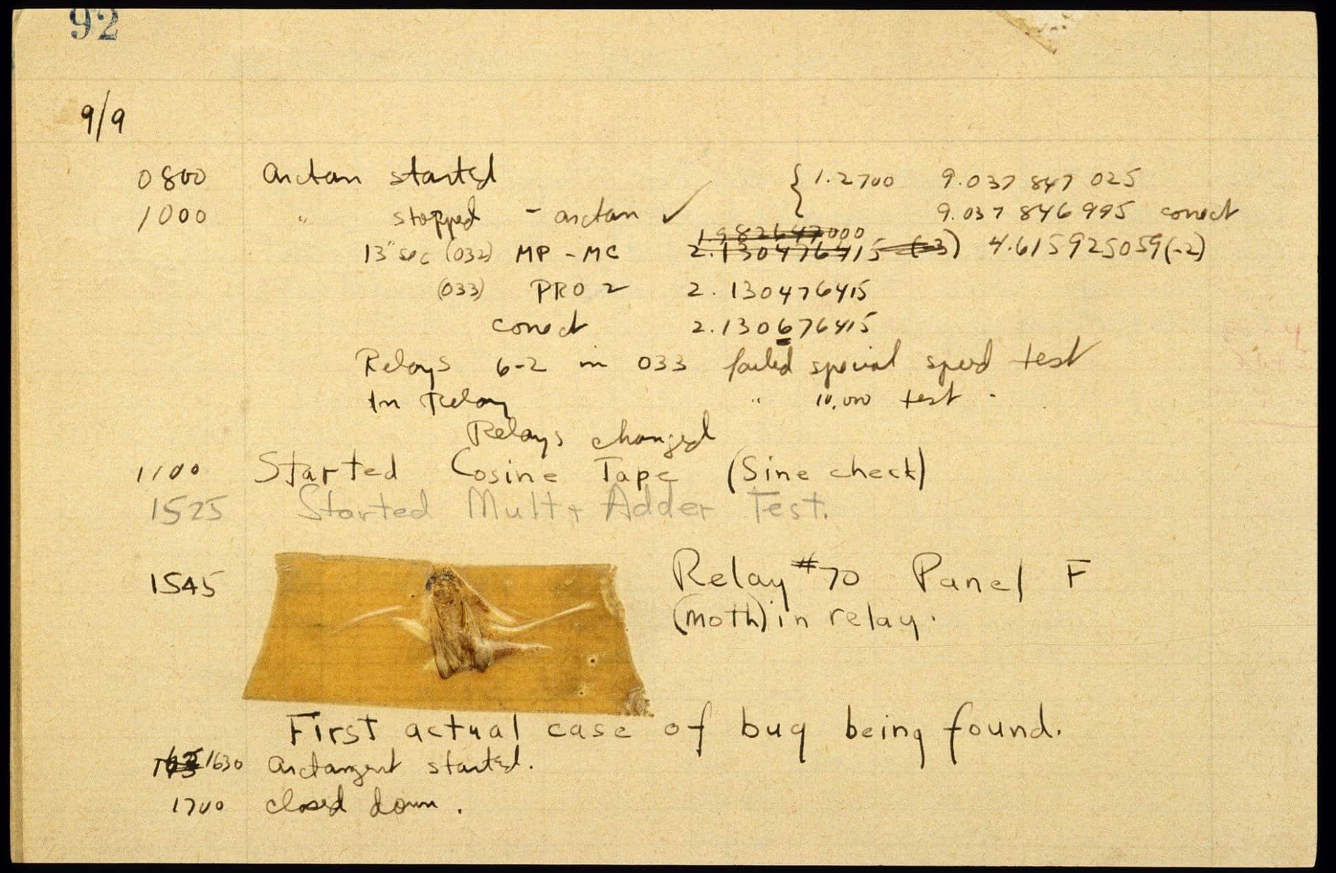 9 сентября 1947 года операторы компьютера, который тестировался в Гарварде, зафиксировали его отключение. В процессе разбора проблемы был обнаружен мотылек, закоротивший реле. Таким образом, был зафиксирован не только первый баг компьютера, но и популяризирована идея дебаггинга (отладки). В настоящее время журнал с приклеенным мотыльком находится в Национальном музее американской истории.
