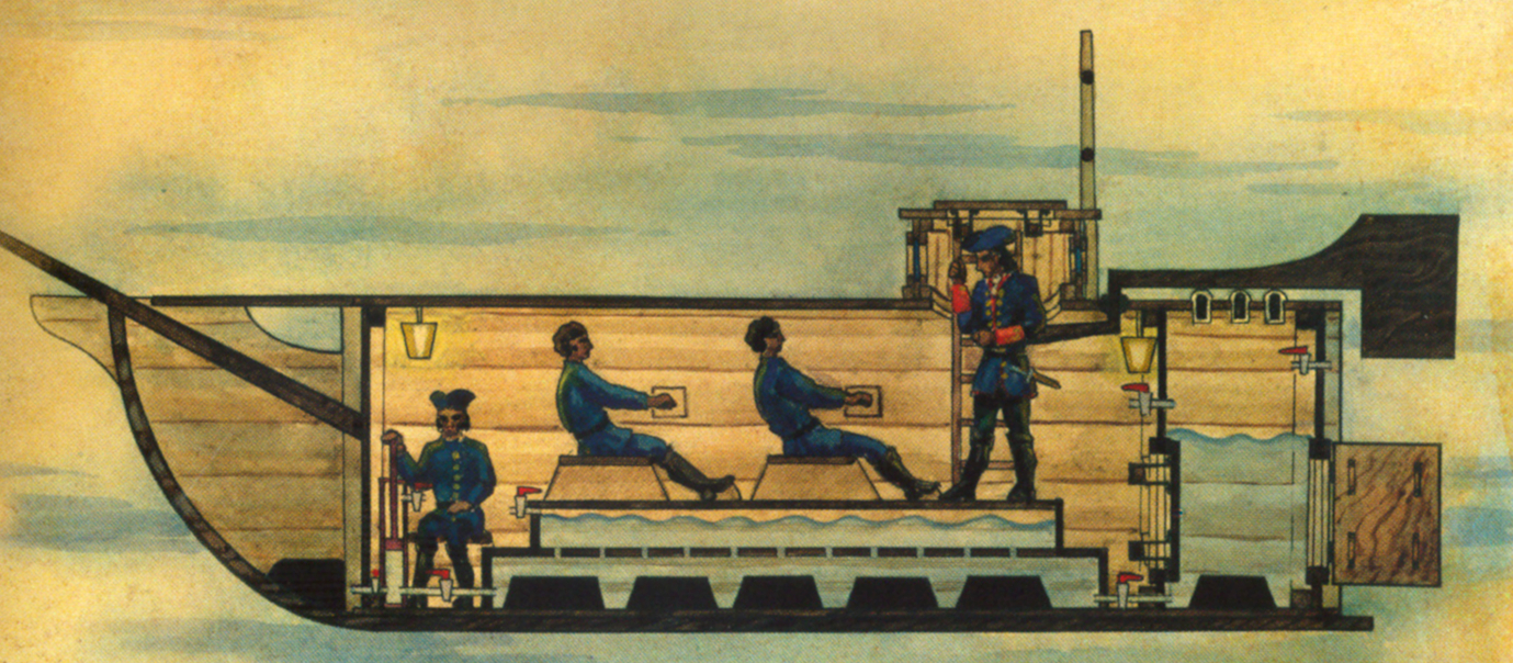 Начало 18-го века, Пётр I строит флот. И тут к нему является крестьянин из Подмосковья с предложением, которое звучит как авантюра: сделать судно, что «будет ходить в воде потаённо» и сможет пробираться под днищами кораблей.