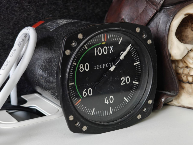 Небольшая предыстория - идея сделать "аналоговый" показометр у меня была уже очень давно. Я гд��-то в году 2012 купил себе двухстрелочный тахометр от турбовинтового самолёта, который я хотел "оживить". Естественно, никто ничего за 10 лет не оживил :) Но идея никуда не девалась, прибор переехал вместе со мной в Германию в 2017 году и до сих пор стоит у меня на столе: