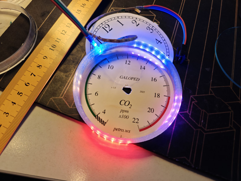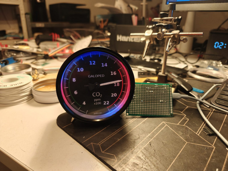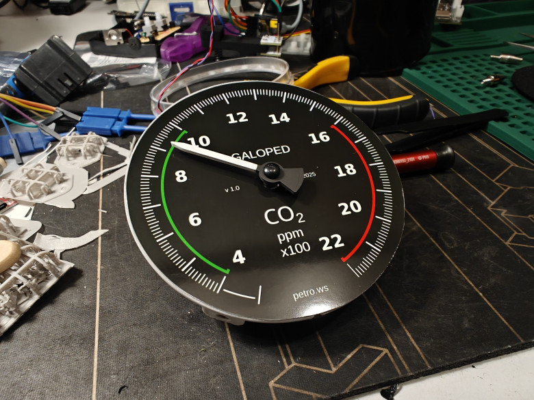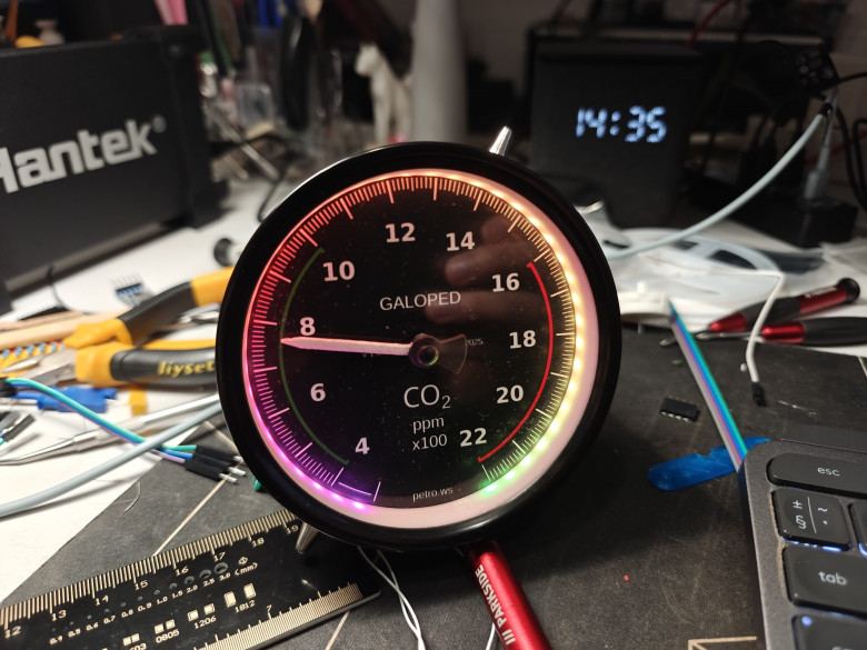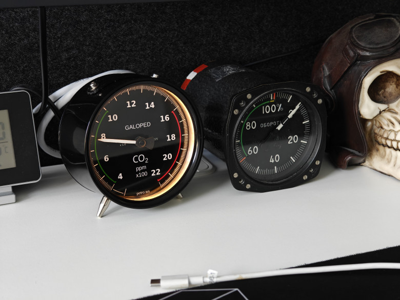 Сразу оговорюсь, прибор конечно же не аналоговый, а полностью цифровой. "Аналоговый" тут только дизайн, внутри же ничего сверхъестественного на данный момент времени. Используется народный датчик SenseAir S8 и инструментальный шаговый двигатель для автомобильных приборок.