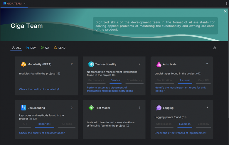 Начнём с группы ИИ-помощников — плагинов, которые используют возможности GigaCode для автоматической работы с кодом. Все они бесплатны, но для работы требуют активированный GigaCode.