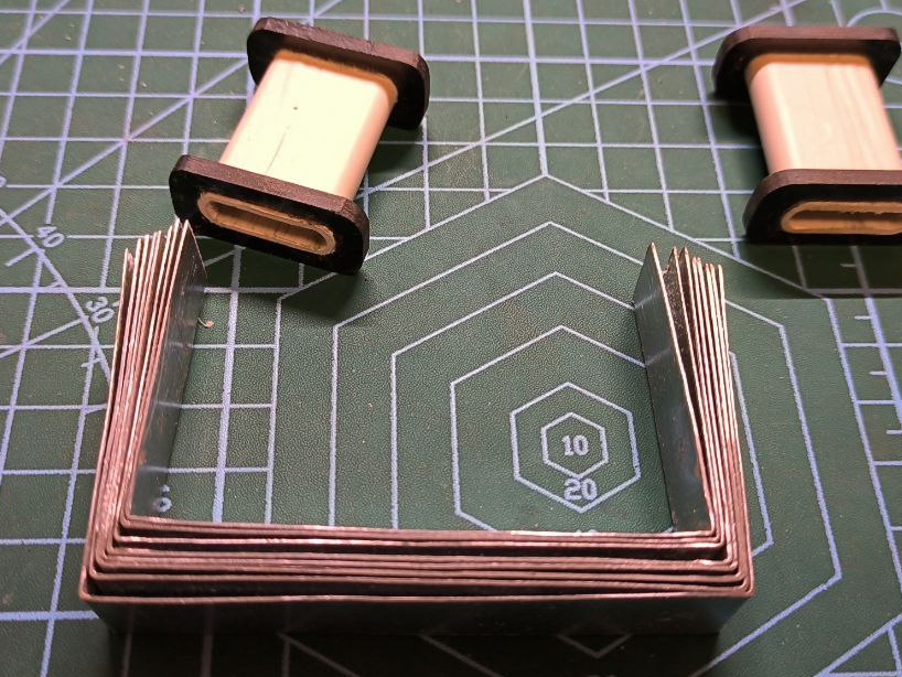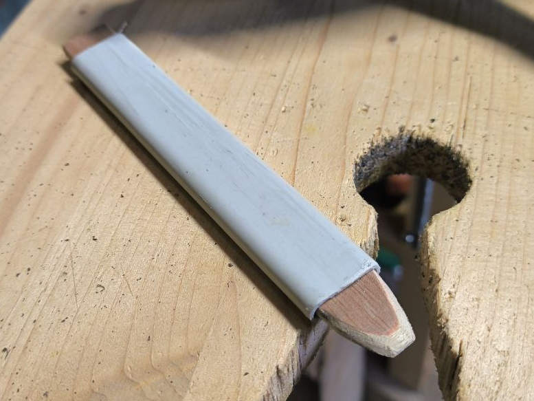 Катушки изготавливаются по той же схеме, что и в прошлый раз, но с одним отличием: сердечник теперь не круглый. Поэтому мы взяли ПВХ трубу для проводки, и, нагрев аккуратно феном, надели на специально вырезанную палочку.