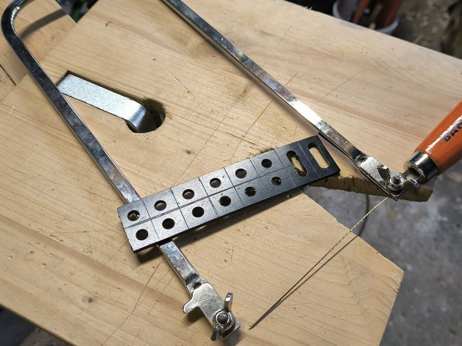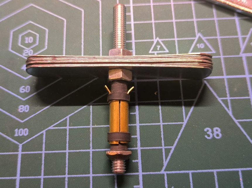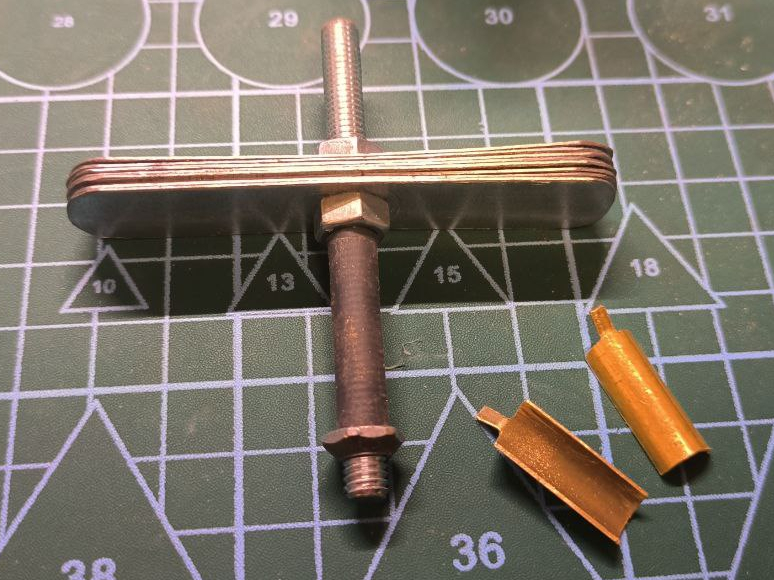 Мы (эксплуатирую детский труд!) начали с изготовления якоря. В книге предполагается его делать наборным из жестяных полосок, но мне было лень заморачиваться, просто отрезали кусок от стальной полосы и его просверлили по центру.