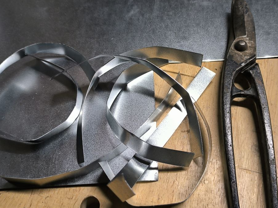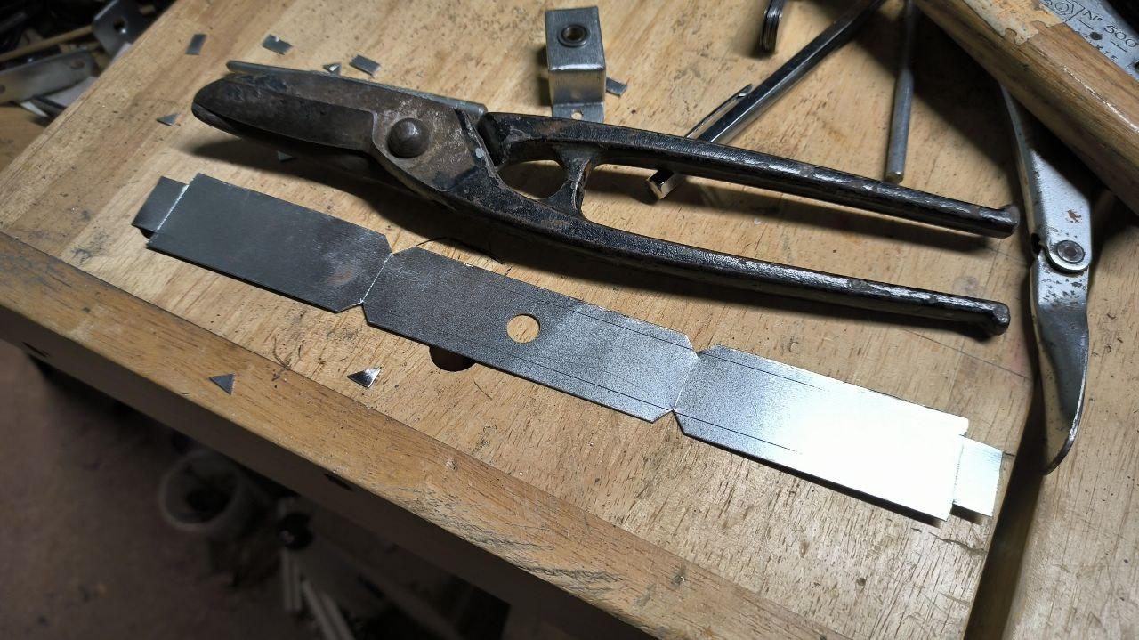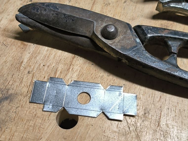 На сей раз сердечник у электромагнитов будет набран из полосок жести. Абрамов и Хлебников предлагают нарезать из консервных банок, что в, принципе, было доступно в их время. Да и в моём детстве были здоровые плоские консервные банки из-под селёдки. А в нынешней реальности я обломался. Во-первых, вокруг меня больше нет свалок с банками. А во-вторых, оказалось, что нынче все банки из тончайшей жести и гофрированные. Так что плюнул я, и купил лист оцинковки...
