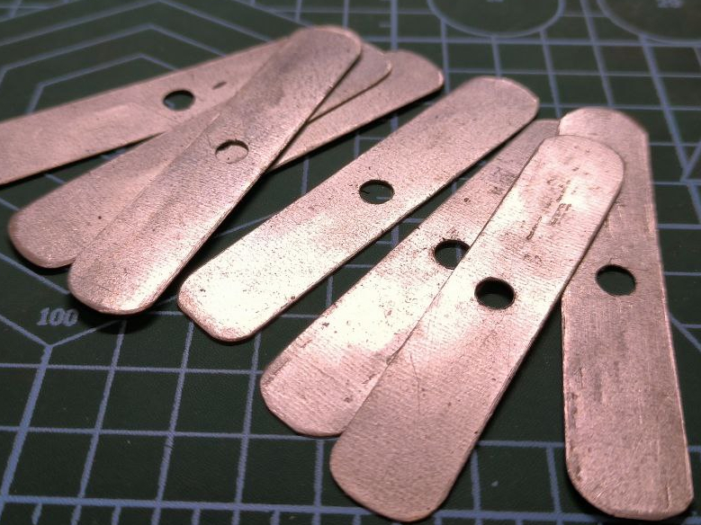 Щётки было бы хорошо вырезать из пружинной латуни, но у меня под рукой не было, поэтому взяли просто медь. Я экспериментировал с формой щёток, но на конечном моторчике они просто согнуты буквой Г.
